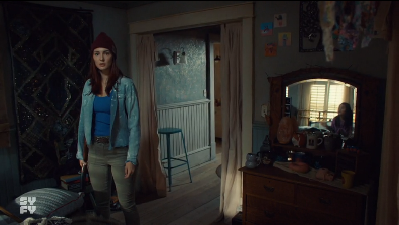 Back at the Homestead, now named ‘Chez Valdez’, Waverly is in a really good mood after her frolic on the stairs, and why the hell wouldn’t she be? The stairs were the perfect place for her reunion with Nicole. Well, Rachel doesn’t seem to mind anyway as she offers Waverly some homemade Kombucha to hydrate. Remember that the walls in the Homestead are thin? Well, she heard everything! Before Waverly can find out anything more, a bell rings to let them know that they have caught something in one of their traps, the one out by the Barn. Rachel and Nicole rush out with guns whereas Waverly grabs the now infamous ‘Earp Spoon’. A great weapon of choice if the monster is one of those Monster Milkshakes, but I somehow don’t think it is one of those.