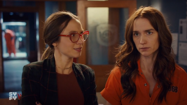 It is bonding time in the box with Wynonna and Casey who is filling Wynonna in on even more of what has happened. Turns out that the town is under quarantine with demons stuck in and humans allowed out. And definitely no criminals are allowed out. Want to see Wynonna go on a Wynonna rant? Well, she does with the camera getting increasing closer with every move in the rant until Sheriff Not Haught informs her that she has a visitor in the form of Waverly in a Lawyer Cosplay with her Scotland Yard glasses on. Wynonna though is transfixed on the time jump and realises she hasn’t had a shit since before the garden. Thank you, Noelle Carbone, for that joke!