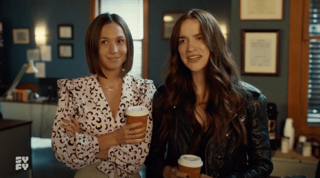 Back from a coffee run, Wynonna is having to deal with the small complaints of the townsfolk, like every pharmacy being out of moisturiser and someone painting flames on their car. All small-time stuff that must be boring as hell to Wynonna Earp: Demon Hunter Extraordinaire! Well, something is clearly afoot when Jeremy comes in all PPE’d up with something that’s not cherry pie all over him to grab his latte. At least it clears out the townsfolk!