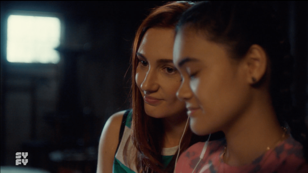 Wynonna is on Ginny watch, but she is still furiously typing on her phone texting someone. Taking a seat and putting peacemaker on the table it finally glows, but not for the ‘Demon Kuru’, but it glows for Ginny in the orange coat. Turns out Ginny isn’t just a poor damsel in distress, she is actually a genie and Doug/Kuru’s wishes are doing the talking in their co-dependent relationship.