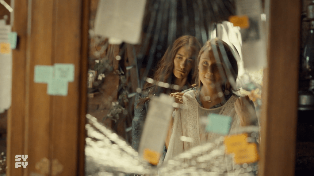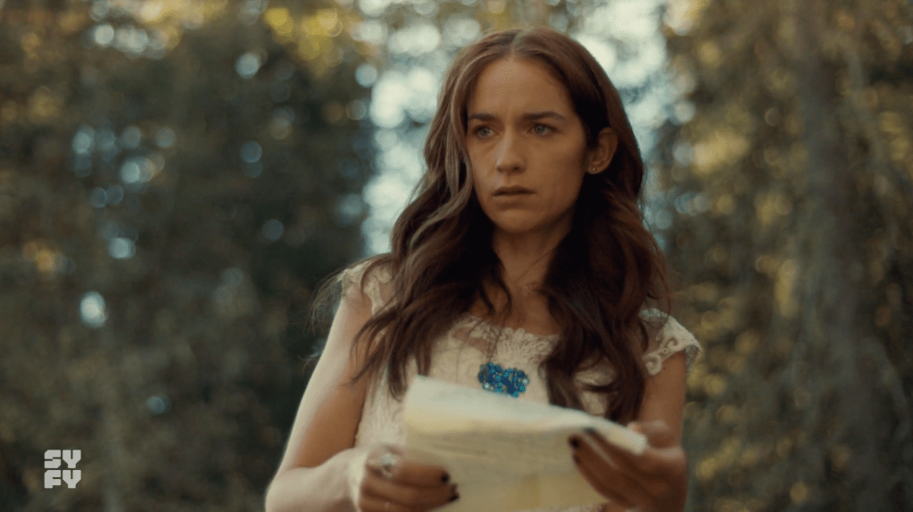 So, we have had the Silk Witch, The Iron Witch, The Blacksmith, Constance Clootie and Maeve Perley, so five witches total now in this show. I must do some further pondering on what this all means. Wynonna tries to explain it away with the dress being magical, but this is not a ‘The wand chooses the wizard’ situation. This is a free will situation, and as long as the chooser is in love then they can freely choose to wear the dress. Do you hear that Doc? Wynonna is in love. And all she wanted was to feel normal. Of course, Waverly tells Brigitte it wasn’t her fault because she is a literal angel, and they leave for the Homestead to find something else that’s old and borrowed. In the barn, we get another throwback. This time to the penultimate episode of season 2 where Waverly was marrying Perry and wore Mama Earp’s wedding dress. Wynonna gets as emotional as I did when my little sister was getting married and I saw her in her dress for the first time. Yes, I did choke back tears, but Wynonna plays off her emotion as just this and not the fact that she is in love with Doc who is leaving her.