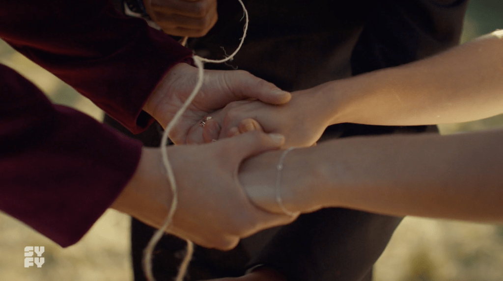 It is now time for the sads again. Doc must make his way on his road trip and it is time for him to say goodbye to his family. He stops and smiles at Wynonna standing on the porch before heading off to his car to leave without Wynonna. My heart breaks each time because Wynonna does not want him in any way to leave, but if you love something you have to let it go, right? Or you could just run towards it and never let go.