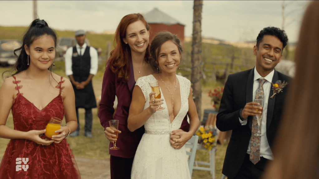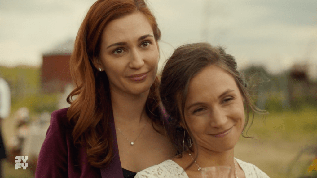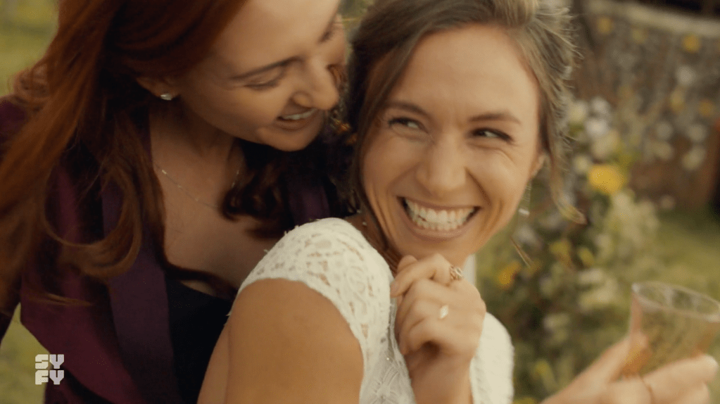 Wedding speeches are always so funny. I remember the father of the bride one my grandad did at my aunts’ wedding where he pulled out a toilet roll and said my uncle talks a load of shit anyway and threw it to the side. It was definitely funnier than that but you get the idea. Calling Nicole out for her middle name, Wynonna steps up for her best woman speech and calls Nicole her best friend. The friendship that has developed between Nicole and Wynonna over the past four seasons is beautiful. It is top shelf, but we all knew it was something special right from our vest first episode 7. What is even more beautiful is that it is a relationship that is shared off-camera between Melanie and Kat as well.