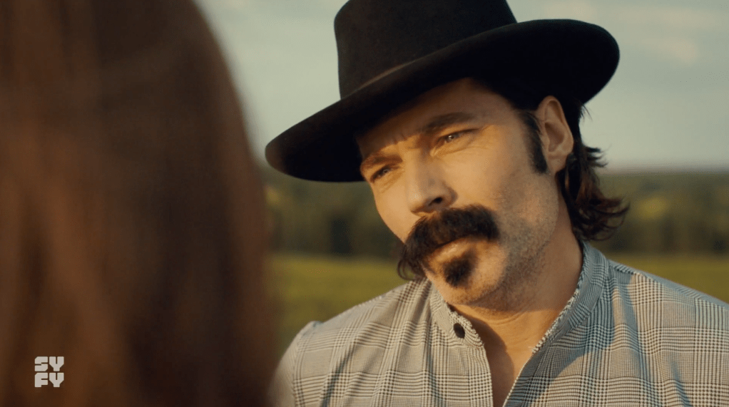 With Wynonna’s speech over, Rachel and Billy jump scare Nedley and convince him to let Billy go fishing with them. The way that Nedley has adopted these two teens into his heart kinda reminds me of another character that Greg Lawson plays in another show that films in Calgary and is also produced by Seven24 Films. Yes, I am speaking about Heartland where Greg Lawson plays Clint Riley who is the person who brought Ty to the Heartland Ranch way back in season one and continues to play a part in their lives. Yes, I may be a little obsessed with Canadian TV OK? Anyway, he allows Billy to tag along with them on their fishing trip, as long as there is no teenage shenanigans from the loved up pair.